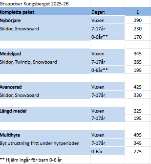 7-17 år 50 kr inklusive Lunch