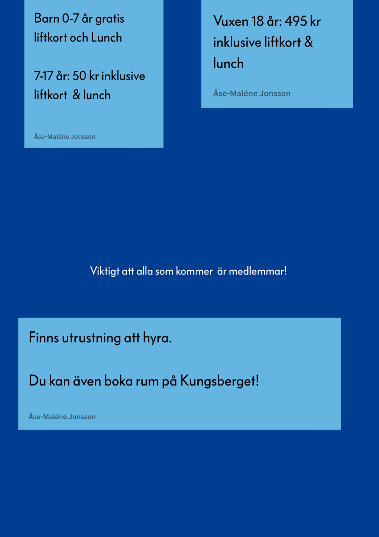 7-17 år 50 kr inklusive Lunch